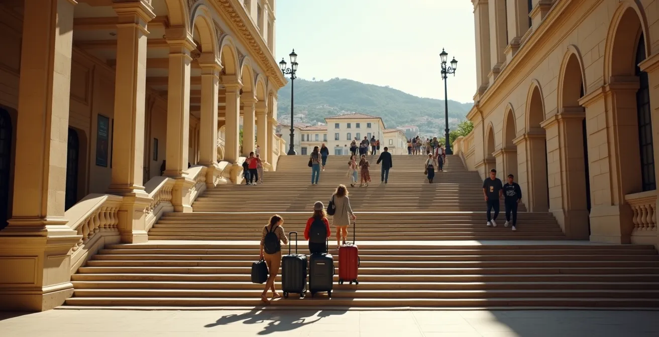 Le premier défi, et non des moindres, est l’escalier monumental de la gare Saint-Charles. Spectaculaire, il devient vite un cauchemar pour quiconque transporte des bagages lourds. Tenter de le descendre directement est une erreur classique qui garantit fatigue et énervement avant même d’avoir posé le pied en ville. Heureusement, plusieurs alternatives bien plus confortables existent, à condition de les connaître. La gare a été pensée pour tous les types de voyageurs, mais ses accès les plus pratiques ne sont pas les plus évidents.