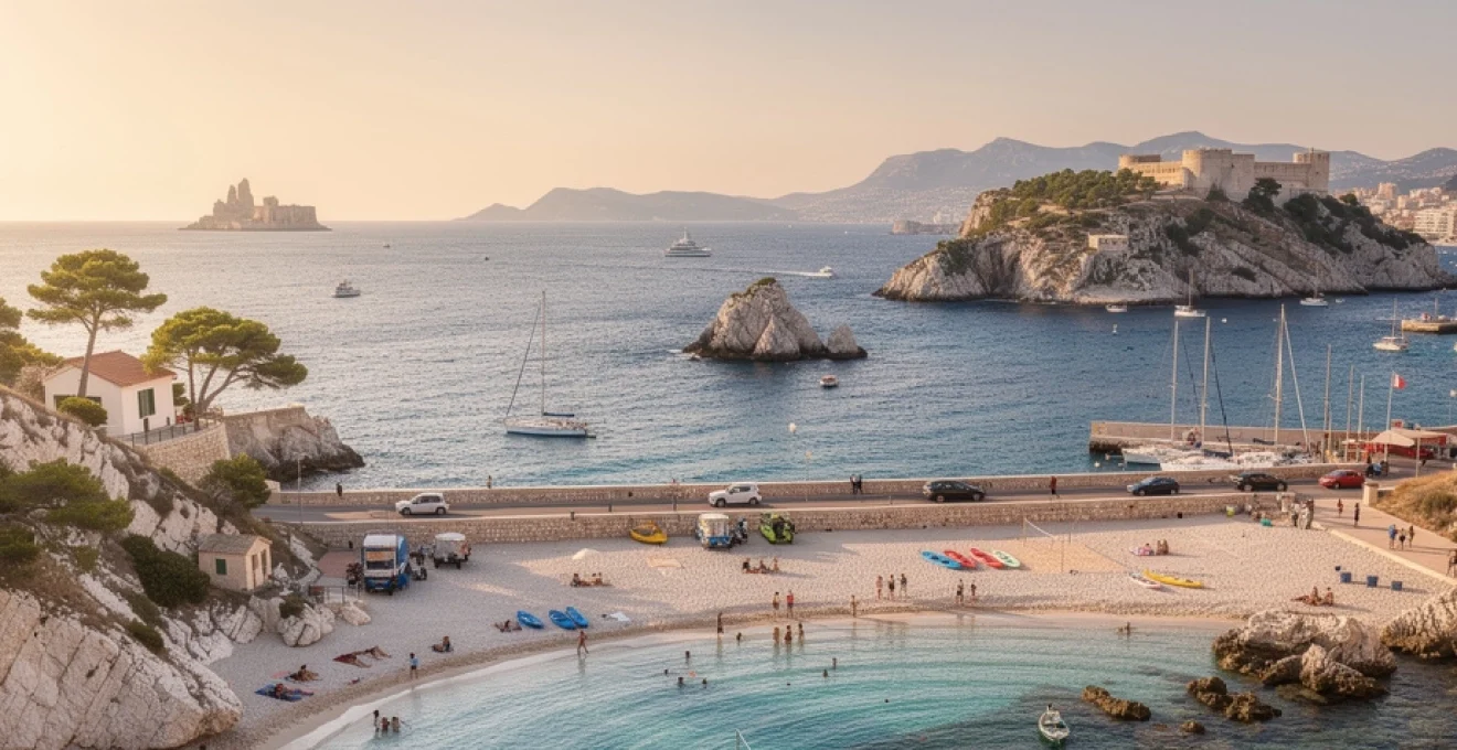L’ensemble est surveillé en saison par des maîtres-nageurs, et dispose de sanitaires, cabines, douches ainsi que d’un terrain de beach-volley très fréquenté en fin de journée. La ligne de bus 83, qui longe la corniche depuis le Vieux-Port, permet d’y accéder facilement sans voiture, ce qui en fait un choix idéal pour une journée plage sans stress de stationnement. En été, les Marseillais aiment y prolonger la journée jusqu’à la tombée de la nuit, transformant la plage en véritable salon à ciel ouvert.