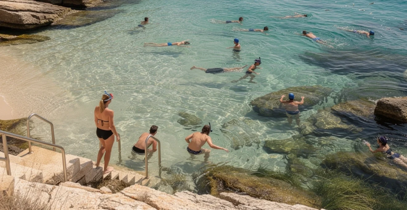 La présence de surfaces rocheuses immergées favorise également le développement d’algues brunes et rouges, de petites éponges et d’invertébrés fixés comme les anémones. Cet environnement en trois dimensions constitue une véritable “ville sous‑marine” miniature où chaque anfractuosité peut abriter une crevette, un petit poulpe ou un gobie discret. Pour le baigneur équipé d’un simple masque et tuba, l’anse se transforme ainsi en terrain de découverte ludique et pédagogique, idéal pour initier les enfants à la biodiversité marine sans quitter la ville.
