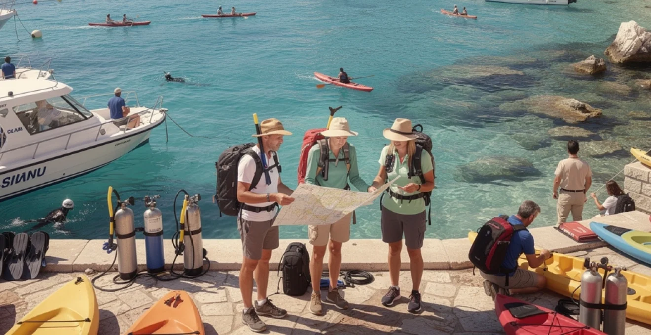 Pour le snorkeling, de nombreux prestataires proposent la location de masques, tubas, palmes et combinaisons légères directement sur les quais. Cette facilité logistique est un avantage non négligeable : vous pouvez par exemple embarquer sur un petit bateau privé ou une excursion en catamaran, avec tout l’équipement nécessaire pour explorer les eaux cristallines lors des arrêts baignade. Pensez toutefois à respecter les consignes des guides, notamment l’interdiction de toucher les fonds, de prélever des espèces ou de piétiner les posidonies, véritables poumons de la Méditerranée.